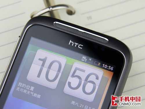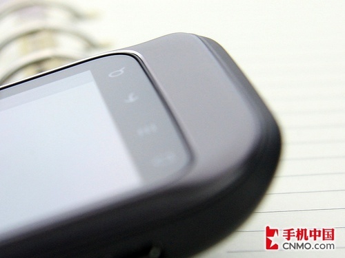 从HTC Wildfire一直有“小Desire”之称,“翘下巴”就是一个相似处。而在HTC Wildfire S上同样延续了这样的设计,机身下方也同样带有轻微的翘起曲线。