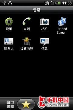 主菜单方面,HTC Wildfire S在底部加入了“常用”以及“已下载”两个设计,这样的话用户可以更为快速的找到相关应用程序。同时滚动图标的时候也滑动幅度设计成为了整屏图标切换,不再像之前那般可以任何幅度滑动。