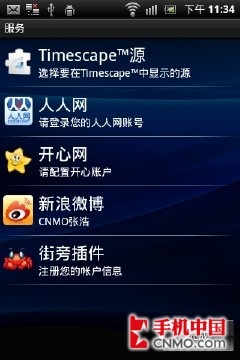 Timescape界面也依然保留,行货版ST15i内置了丰富的本地化社交网络应用。