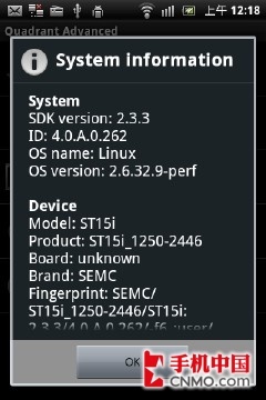 硬件则是Android系统的支撑,所以笔者特别关心索尼爱立信ST15i的硬件配置。虽然它的身材特别的小巧,但是在精巧的机身下隐藏着强大的“心脏”,索尼爱立信ST15i的处理器达到了目前高端手机的硬件水准。