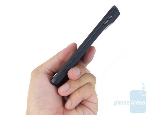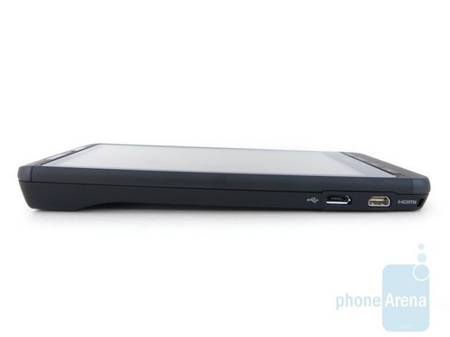 与Droid X不同的是,Droid X2这次抛弃了拍照快捷键,我们可以在图片中看到,Droid X2的右侧只有两个音量调节键,而没有了Droid X上鲜艳的红色快门键。