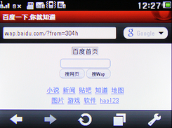 摩托罗拉EX223内置的是Opera Mobile浏览器,因而主菜单第四屏的百度搜索、手机新浪和RSS等很多方块其实都是基于Opera Mobile浏览器的链接。在主界面下点浏览器、手机新浪等菜单,会贴心的弹出“需要支付额外费用,是否继续”的提示。