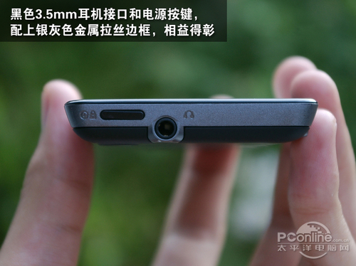 机身顶部是3.5mm耳机接口和黑色锁屏及稍微凸出的电源按键,保证在口袋或包包中不会误按的同时也能让用户更快的找到按键。