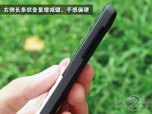 机身右侧仅有音量调节键,虽然拍照时不能调节焦距,但值得一提的是在听歌和听FM收音机时,能在锁屏状态下直接调节音量。