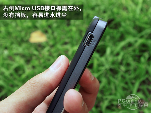 机身右侧是Micro USB数据接口,底部则是录音孔和手机挂饰孔。