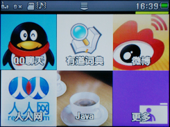 摩托罗拉EX223另一个杀手锏便是内置的多个SNS应用:QQ聊天、QQ斗地主、MSN Messenger、开心网、人人网、微博和有爱网等本土化JAVA程序,实在是QQ、微博控等社交达人随身利器。其内置的2010版QQ可以后台运行,也就是说可以同时听歌和开启第二个JAVA应用。不过需要提醒的是,众多的JAVA程序中,只有QQ可以后台,其他程序只能暂时最小化,下次打开时要先退出。