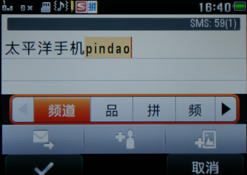 摩托罗拉EX223内置搜狗输入法并可以在线更新词库。这是摩托罗拉EX223在中低端非智能机市场的杀手锏之一。其内置的搜狗输入法支持拼音、笔画输入和繁简体手写输入,经使用,手写识别率非常高。搜狗输入法的其他功能笔者就不在这里详细叙述了,相信用过智能机的读者对其强大的功能应该深有体会。结合全键盘和搜狗输入法,摩托罗拉EX223在文字输入上可谓风生水起,极为方便。