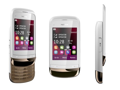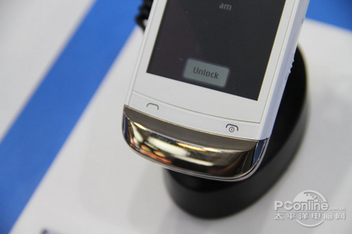 诺基亚C2-03是一款采用S40的滑盖手机,与众不同的是它在提供T9机械按键的同时也提供了一块触控屏幕。大会上展出的诺基亚C2-03白色机身与金色下巴搭配,显得分外优雅与高贵。