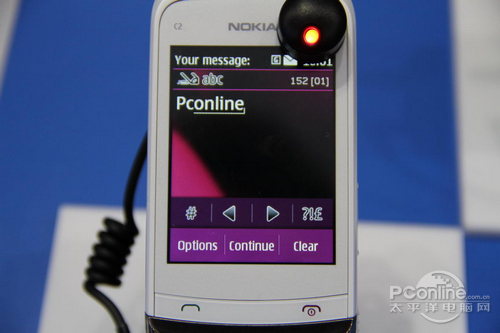 这里值得提一提的是诺基亚C2-03的短信编写界面。因为这是一款触键双控机型,在输入文字是同样可以在界面上点选操作,让输入更为快捷。