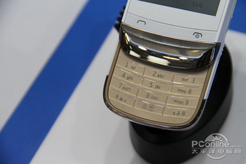 推开滑盖后看到的是同样金色系的熟悉的T9键盘,根据图片显示,诺基亚C2-03键盘应该采用了特殊的防滑材质,手感应该挺不错,这也是诺基亚一贯的强项。