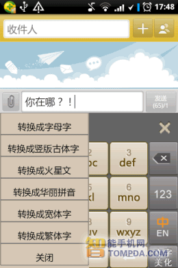 想让短信充满古代风情么?同样在文字美化功能界面下选择竖版古体字,便可让短信内容变得好像唐诗宋词一样具有诗情画意!