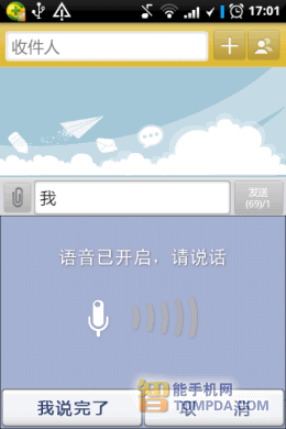 讯飞语音手机输入法(点击下载)不仅能够轻松实现用语音发短信、写微博、聊QQ、输网址,而且还能够连续手写输入,实现同一界面下多种输入方式平滑切换,更加符合更多用户的使用习惯,大大提升了手机输入速度。