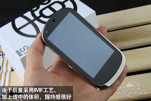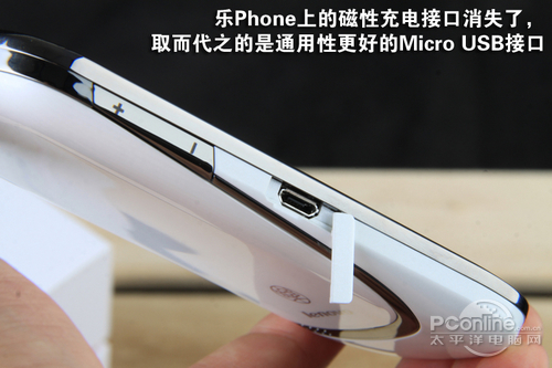 从机身正面可以看出,乐Phone S1机身设计和乐Phone相差不大,不过由于乐Phone S1后盖采用了IMF膜覆处理工艺,单手握持时后盖与手掌的贴合更好,再加上适中的体积,拿在手里有一种温润感。