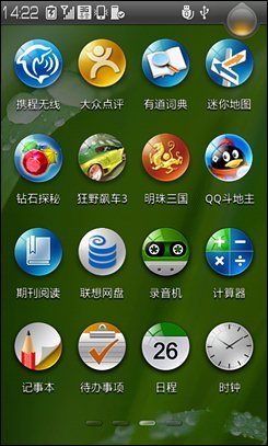 圆形的图标是乐Phone S1内置的程序,而四方形的图标则是用户自行安装的第三方应用。