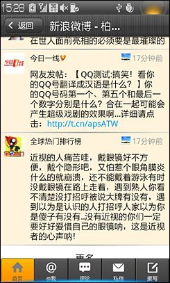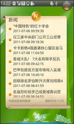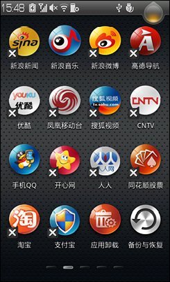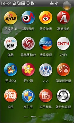 乐Phone S1作为一台本土化的国产手机,当然在软件预置方面与常见的Android有很大的区别。我们可以看到,在乐Phone S1上有许多与国内应用产品结合的东西,例如新浪新闻、新浪财经、音乐、微博与众多视频客户端等等。