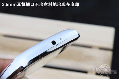 底部是3.5mm耳机插口和录音孔。只是为什么耳机孔要在手机底部呢?用耳机听歌或接电话时不大方便,总觉得有点碍手。