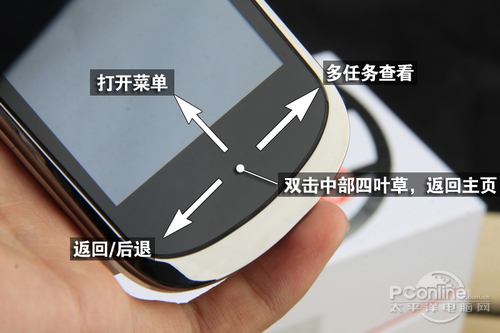 屏幕下方的黑色面板就是很值得说说的手势区。用过乐Phone的朋友应该是很清楚手势区的使用的,由于手势区的存在,乐Phone S1(包括乐Phone)上我们再也见不到Android手机必备的返回键、菜单键、主页键和搜索键。