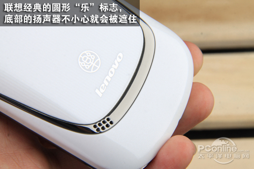 机身背面则异常简洁,白色的后盖上只有摄像头、联想Logo和低调的扬声器。后盖由于采用了IMF工艺,拿在手里观摩时竖条纹理隐约有一种3D效果。