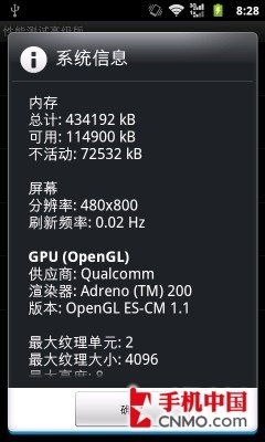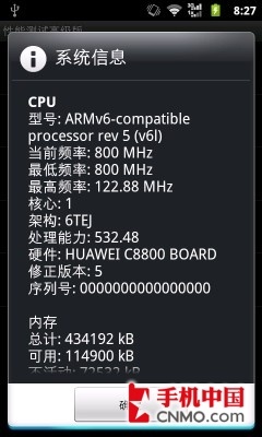 华为C8800的硬件信息和跑分结果