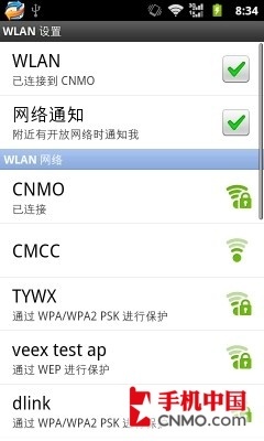 华为C8800的Wi-Fi设置界面