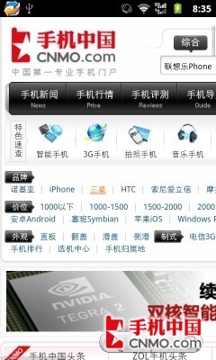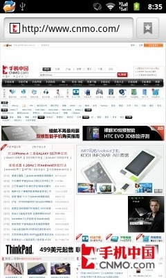 得益于宽大的3.8英寸WVGA规格屏幕,华为C8800在网页浏览方面有了出色的表现,在展现网页内容时更加的细腻,不用缩放多大的级别,就可以看清楚网页的字,单页可展示的内容也更多。通过多点缩放,我们浏览网页时也更加随意。
