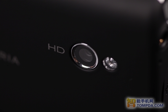 背面设计比较简洁,采用磨砂防滑设计。流线型的背壳上500万像素的摄像头设置在左上方,旁边的HD标志是显示着摄像头拍摄高清功能,下方则是索尼爱立信的图案标志。SK17i体积小巧,但因为有一定的厚度再加上背面流线型人体工学设计,使得整体手感很不错。