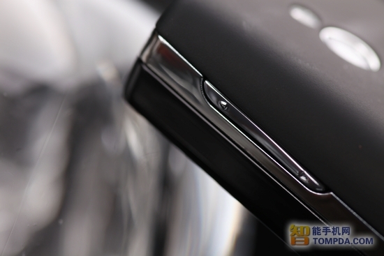 为了用户能便利地打开后盖,索尼爱立信特意在机身侧面设计了一个小小的凹陷。但是在实际使用的过程中还是要费很大的劲才能打开后盖,不过这也从侧面反映了SK17i的做工还是十分精细的。