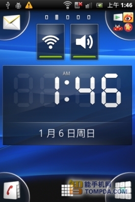 Timescape 界面最为个性的就是利用了屏幕的四个角作为快捷键,我们最多可以将四个应用程序图标放置里面,其将固定在待机界面上。如果不是某一待机分页有图标和组件占 用了边角的位置,就会常驻显示。这样一来,我们就可以最多把16个快捷方式放在边角,且有缩略图显示,为用户带来了方便。