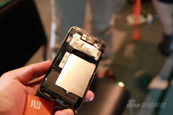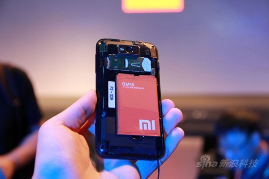 总体来说小米手机背部与整体简洁风格契合,但背盖用材并不出众,导致略有粗糙之感。此次发布会上雷军也表示,随着小米手机的推出还将配备有丰富的彩色配件,包括0.5mm超薄七彩保护壳,提供用户更多的选择。除此之外,还有个性的多彩备用电池、MI手机链、可爱原型支架等众多周边产品可选。