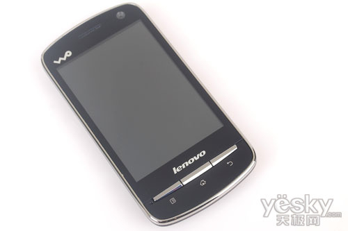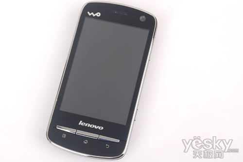 联想A60的外观设计上与联想乐Phone有些神似,都是采用了直板触屏设计,不过A60的底部为物理操作按键,外形上也更显得硬朗一些,并没 有乐Phone那么圆润。该机正面大部分都被320x480像素的3.5英寸触摸屏所占据,显示效果和触控手感都非常不错,屏幕上方为联通“沃”的标志和 30万像素前置摄像头,下方则是该机的三枚物理按键,从左至右依次为菜单键、主页键和返回键。另外,手机外沿被一圈银色金属镶边所包裹,时尚感十足。