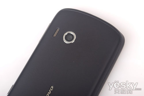 联想A60的背面是采用磨砂材质所打造,不仅手感非常不错,也不容易被指纹所侵袭,背面的顶部是一枚320万像素的摄像头,不过没有配置LED 闪光灯。另外,扬声器也被设置在了手机背部摄像头的旁边。摄像头下面的部分为手机电池仓后盖,联想的Logo也被印在上面,装饰的非常好。
