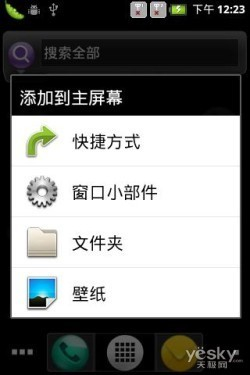 联想A60待机界面共分为五个分屏,可以任意添加修改widget小插件,屏幕下方是三个固定的快捷键,依次为拨号键、菜单键和短信键。屏幕之间的切换非常流畅,并没有丝毫卡顿现象出现。
