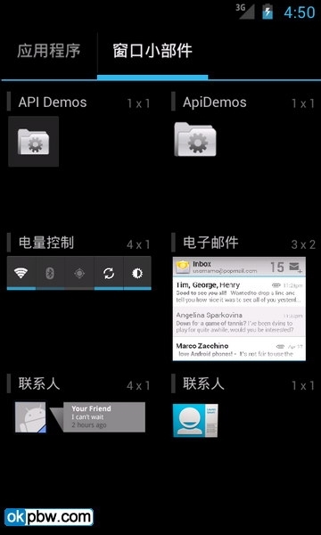 所有程序上面除了“应用程序”选项卡之外,还另外添加了“窗口小部件”选项卡。