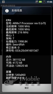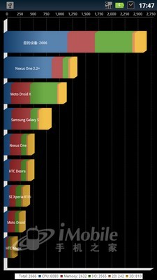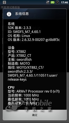 下面小编使用专用的测试跑分软件对摩托罗拉XT882进行跑分测试,从结果中不难看出,摩托罗拉XT882的整体性能已经完全超越了HTC Nexus One,尤其在运行内存和图形处理的方面,强悍的硬件配置让其拥有着非常出色的跑分表现,“核”战争的爆发也标志着智能手机进入了一个新的时代,硬件配置的提升让智能手机可以为我们带来更多不可思议的事情。