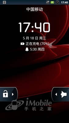 摩托罗拉XT882采用了Android 2.3智能操作系统,对于界面方面进行了很大的优化和改良,摩托罗拉也为其加入了很多自己的元素,全新的界面不仅为用户在操控手机时带来了方便,对于整体界面的美化也下了不少功夫。在解锁界面与其他Android手机没有太大区别,依然是向右滑动为解锁,向左滑动为静音解锁。