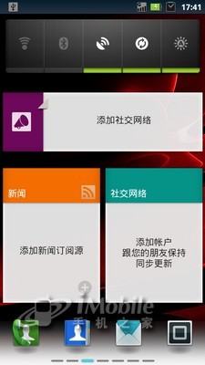 MOTOBLUR作为摩托罗拉独家社交网络推送服务功能,有着非常出色的表现,也深受广大消费者的喜爱,在摩托罗拉XT882中我们也见到了它,它可以将SNS社交网络中更新的信息非常简便而又迅速的推送到桌面,让用户可以在第一时间查看到亲朋好友们更新的最新的状态与趣事,用户只需要简单几步绑定好社交网络账号,便可轻松实现这一服务。