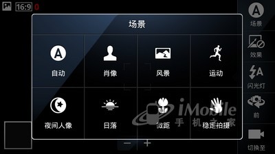 进入摩托罗拉XT882的拍摄界面,我们可以看到在屏幕中有横竖的分割线,这个分割线可以帮助用户在拍摄时更加轻松的找到黄金分割点,完美的体验使用拍照的乐趣,在界面的左下侧是图库按键,点击便可以进入相册查看拍摄的照片,右侧的箭头点击后会弹出拍摄参数设置,摩托罗拉XT882为用户提供了场景、效果、闪光灯等多种参数设置,并且摩托罗拉XT882支持16:9照片拍摄,支持最大1080P全高清视频摄录,整体的拍摄功能还是非常强悍的。