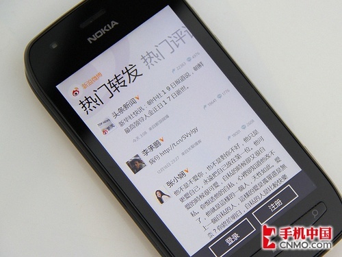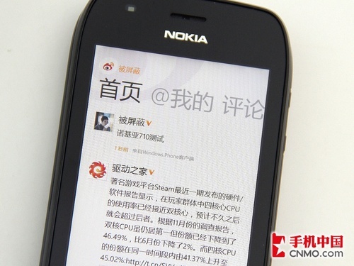 我们也试着用诺基亚Lumia 710发了一条微博,成功后微博内容也生成了来自Windows Phone平台的小尾巴,非常与众不同。