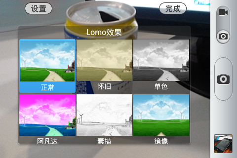 内置相机提供了8种LOMO滤镜,可以拍摄出不同效果的照片。虽然摄像头效果比较普通,但对于日常拍照分享微博等操作来说还是足够了。