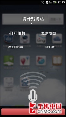 另外,在戴尔D43上,我们也看到了基于云服务的语音操控搜索功能。长按“搜索”键,手机就会弹出语音操控界面,当我们发出语音指令后,手机会进行智能分析,从而实现开启应用程序、程序内搜索或者网络搜索,相当方便快捷。