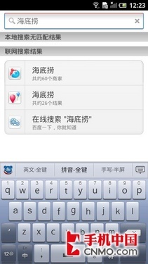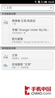 比如,我们输入关键词后,不仅可以显示本地应用程序、联系人或其他内容,还可以分别显示联网搜索获得的MP3歌曲、地图、身边商户、易商店中的Apps等各种资源,我们可以方便地快速点击进入我们需要的内容。