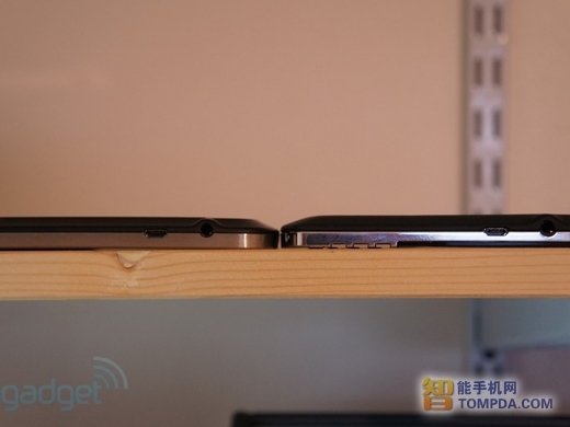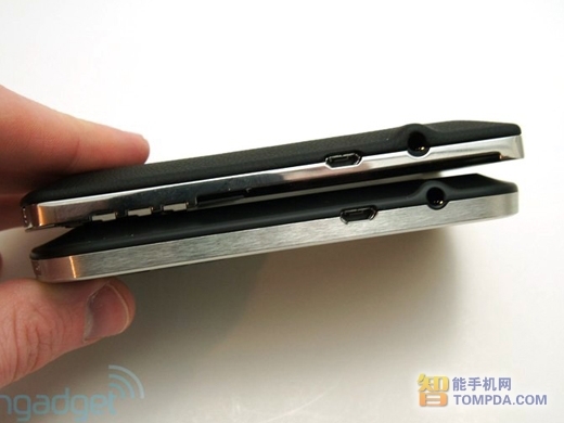 机身厚度上,黑莓P9981比Bold 9900厚了近1mm,由于设计风格的不同,P9981看起来不仅仅只厚了1mm而已。