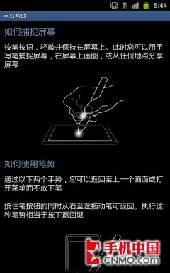 因为三星I9228采用的是电容式触摸屏,普通的触摸笔无法正常的操控,专用的电容笔又太过粗大不够便携,三星则为 我们带来了一个全新设计的触摸笔,它在保证了笔身尺寸外,还可以灵敏的进行操作。值得注意的是,在三星I9228触摸笔身上还安排有一个按钮,配合使用该 按钮可以实现返回键和菜单键的操作,还可以实现很多特色的功能,在后面的部分笔者也会为大家详细介绍一下这支笔的更多花样。