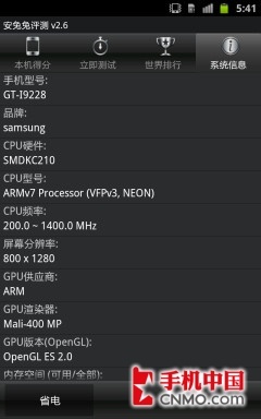 我们通过超级兔子对三星I9228进行了测试,得分也超过了6500分。但和得分相比更重要的是这款手机的操控的确极为流畅,并未因高分辨率而拖慢整体反应。