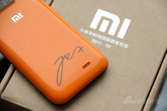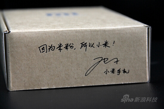 而机器包装的侧面,印有雷军亲手书写的“因为米粉,所以小米”口号。雷军的签名除此之外,还在特定的橘色背盖上有显著体现。