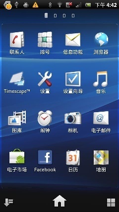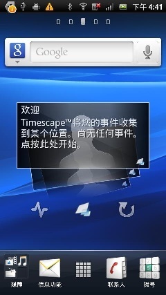索尼爱立信的界面很有特点,自从他们推出的第一款旗舰机开始,一直延续到今天的Timescape是索尼爱立信的一大标志性特色,这个聚合式的社交、信息应用,还是非常符合年轻人的使用习惯的。索尼爱立信LT18i采用的是最新的Android 2.3.4版本系统,同时使用了索尼爱立信自家的Timescape界面,全新版本的Timescape界面在炫丽程度上进一步加强,例如在桌面底部 Dock栏可以添加文件夹,而打开的文件夹会悬浮在桌面其他内容上。当然,作为一款索尼爱立信的Android智能操作系统手机,信息整合的能力来源于自家所创作的Timescape功能,将日常通话、短信和社交网络(行货为新浪微博、人人网、开心网客户端;改版机为Facebook、Twitter等)信息整合到统一界面,方便查收阅读及回复。