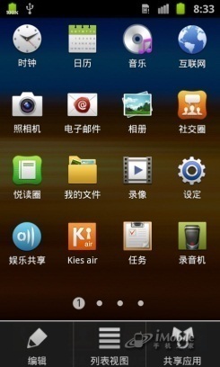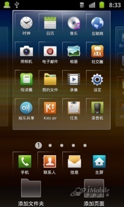 三星I9100同样采用的Android 2.3.4操作系统,搭配上自家的TouchWiz4.0界面,带来舒适的操作体验。解锁界面上,没有看到Android拖拉式图标显示区域,三星I9100可以向任意方向拖拽进行解锁。点击功能键弹出的选项菜单也与TouchWiz 3.0极为相近。但实际选择“添加组件”功能会发现,小组键、快捷键、文件夹、墙纸选项排列到屏幕底部,并不是占满屏幕的显示。而实际选择一项,会横排排列,并且伴有特殊切换效果。
