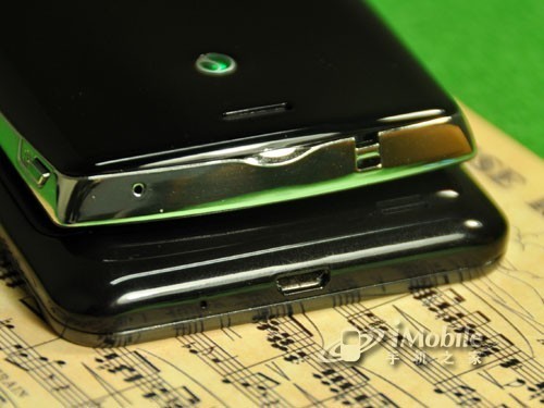 手机机身顶部位置,索尼爱立信LT18i设计了圆形的电源按键,和一个带保护盖的HDMI接口,通过HDMI接口与电视或高清显示器相接,我们便可以通过更高清的设备来播放索尼爱立信LT18i手机中的高清图片或影视。而在手机低端位置,我们看见了挂饰孔,相信女性用户会为手机搭配上一些各式各样的小挂件。