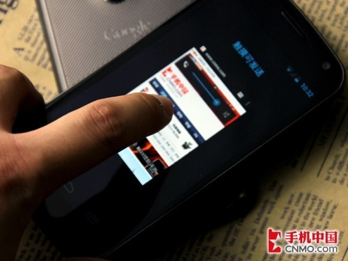 先来看看Android 4.0发布会上演示的网页功能,输入手机中国碰一下。