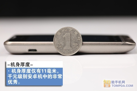 摩托罗拉XT390在机身厚度上也是其他千元级别智能手机中的佼佼者,仅厚11毫米,是一个相当不错的成绩。